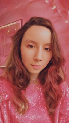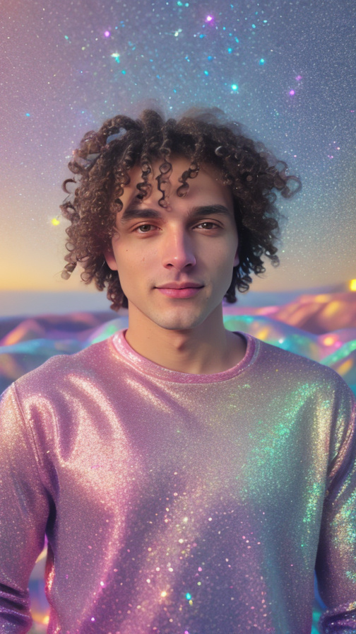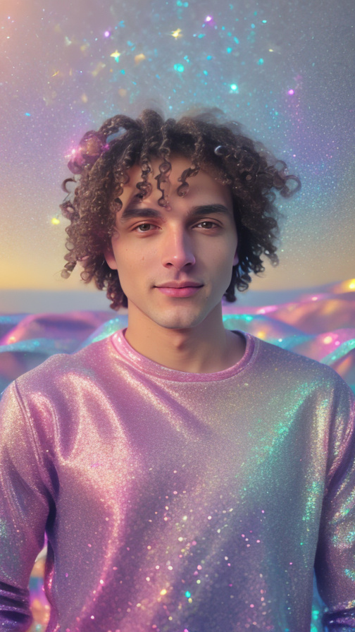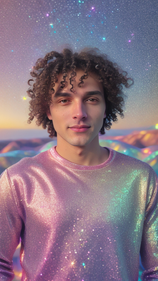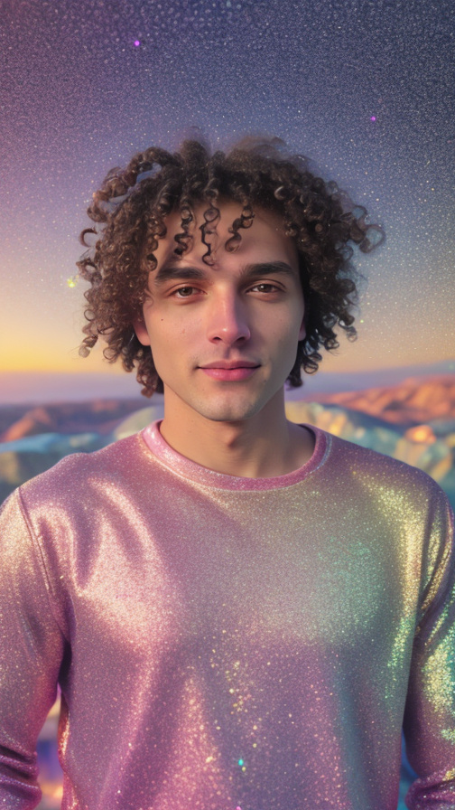 realistic, glitter, sparkles, golden hour lighting, nostalgic, pink magic glowing background