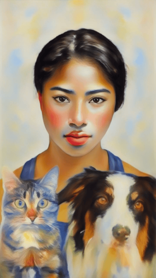 | Prompt: fine art portrait from 18 century, museum masterpiece, floral background, pastel colors | Prompt: masterpiece, face portrait painting, impressionism, watercolor, in the style of Claude Monet |