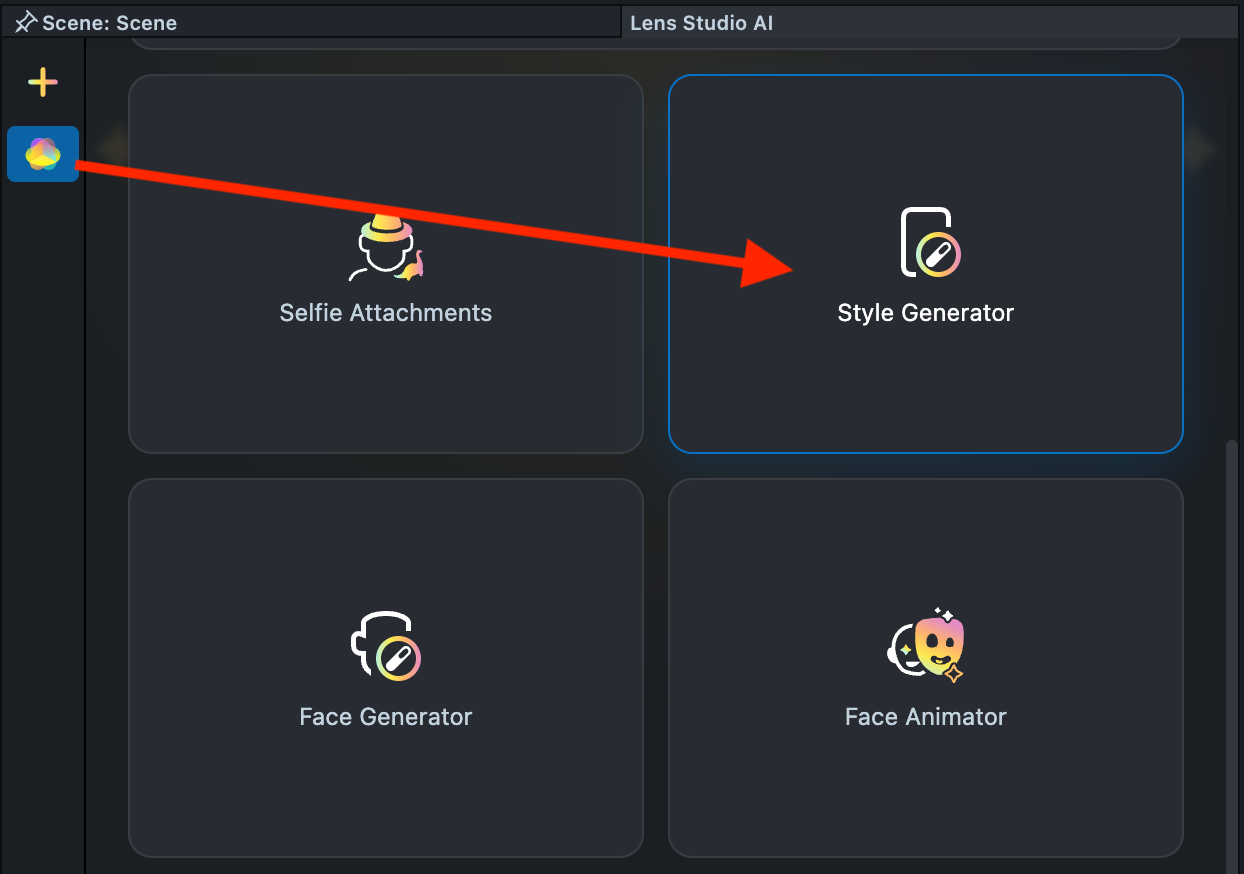 Lens Studio AIoption in the top right corner of the Lens Studio. Then, click on theGenAI Suitetab in the sidebar.