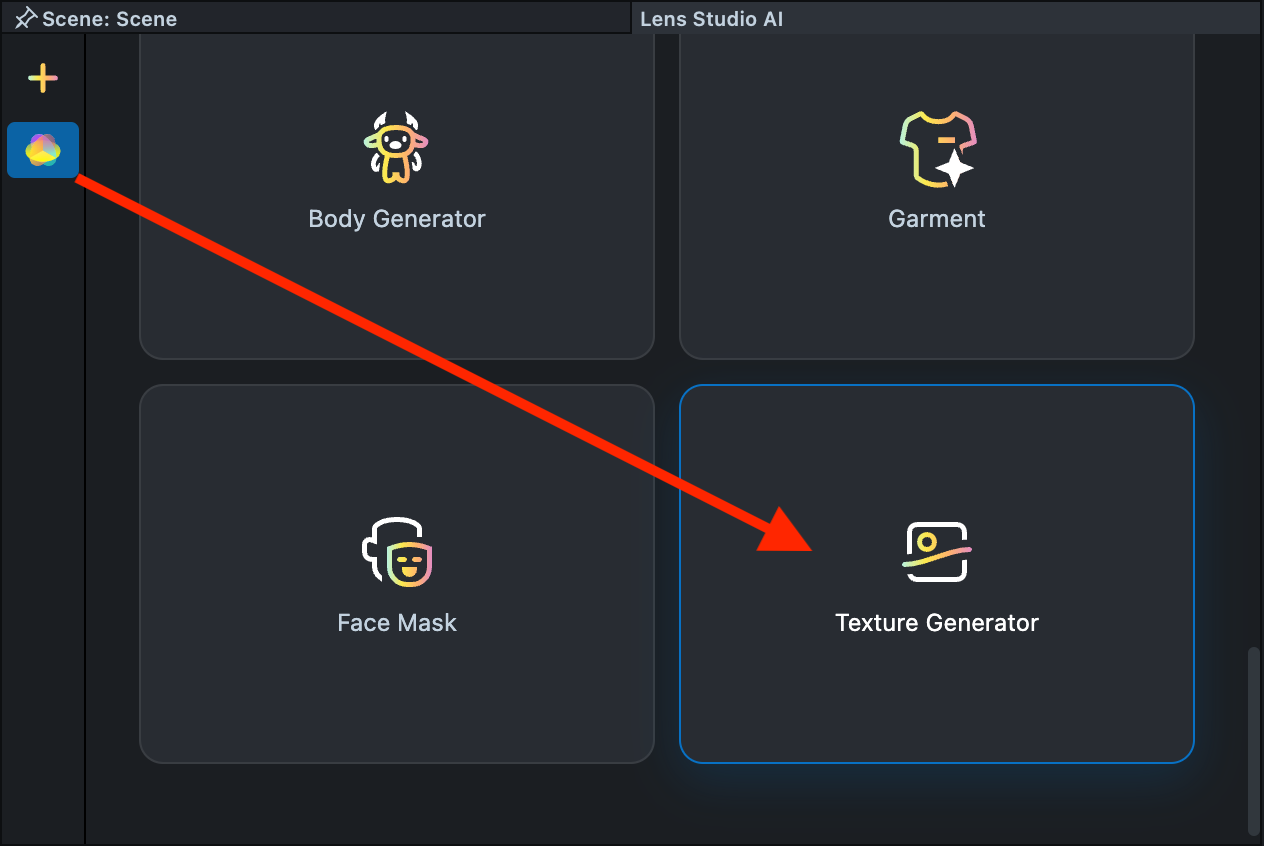 Lens Studio AIoption in the top right corner of the Lens Studio. Then, click on theGenAI Suitetab in the sidebar.