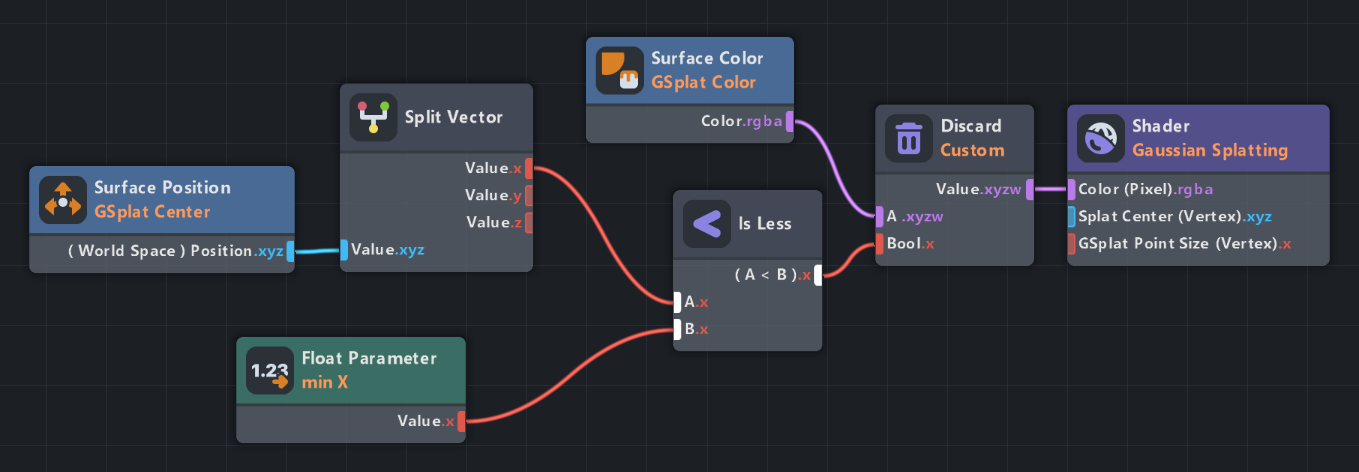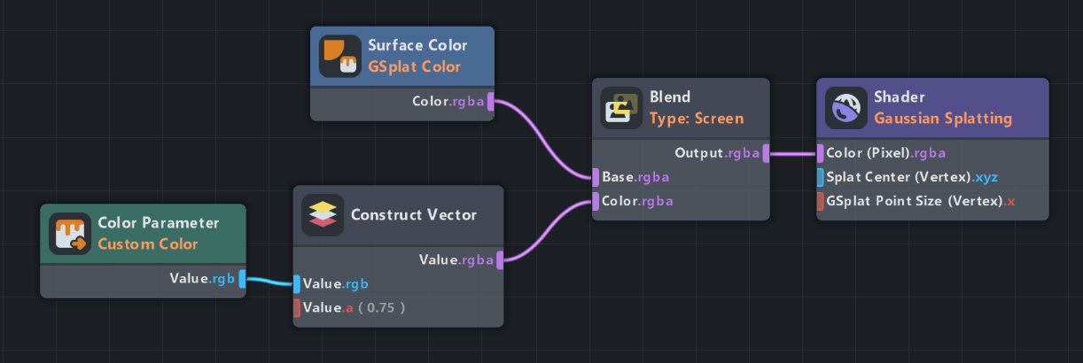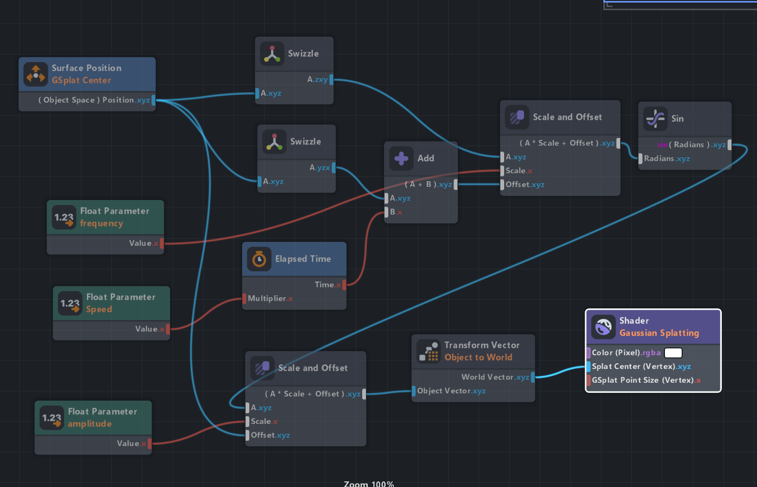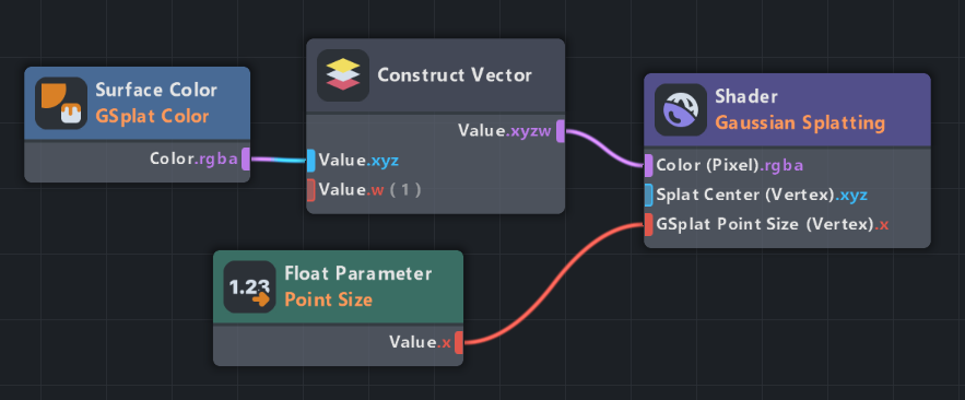 In Gaussian Splatting mode, there are two new inputs that can be overridden. They are applied in the Vertex shader stage.