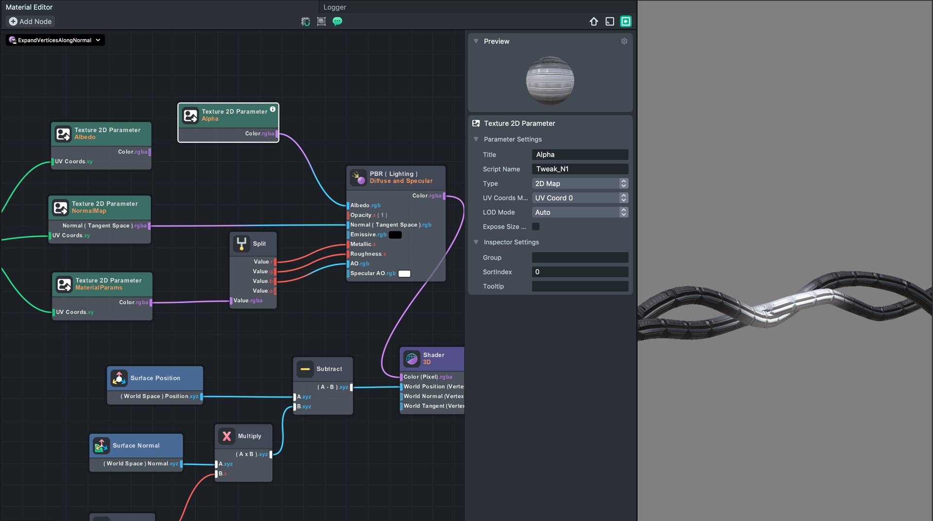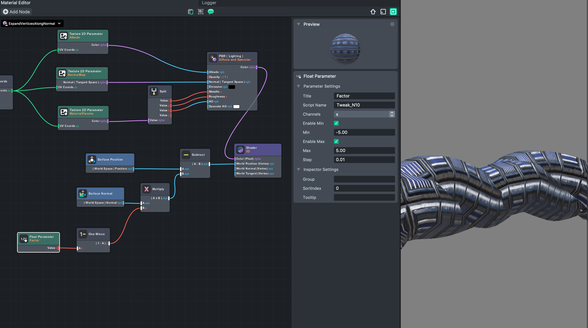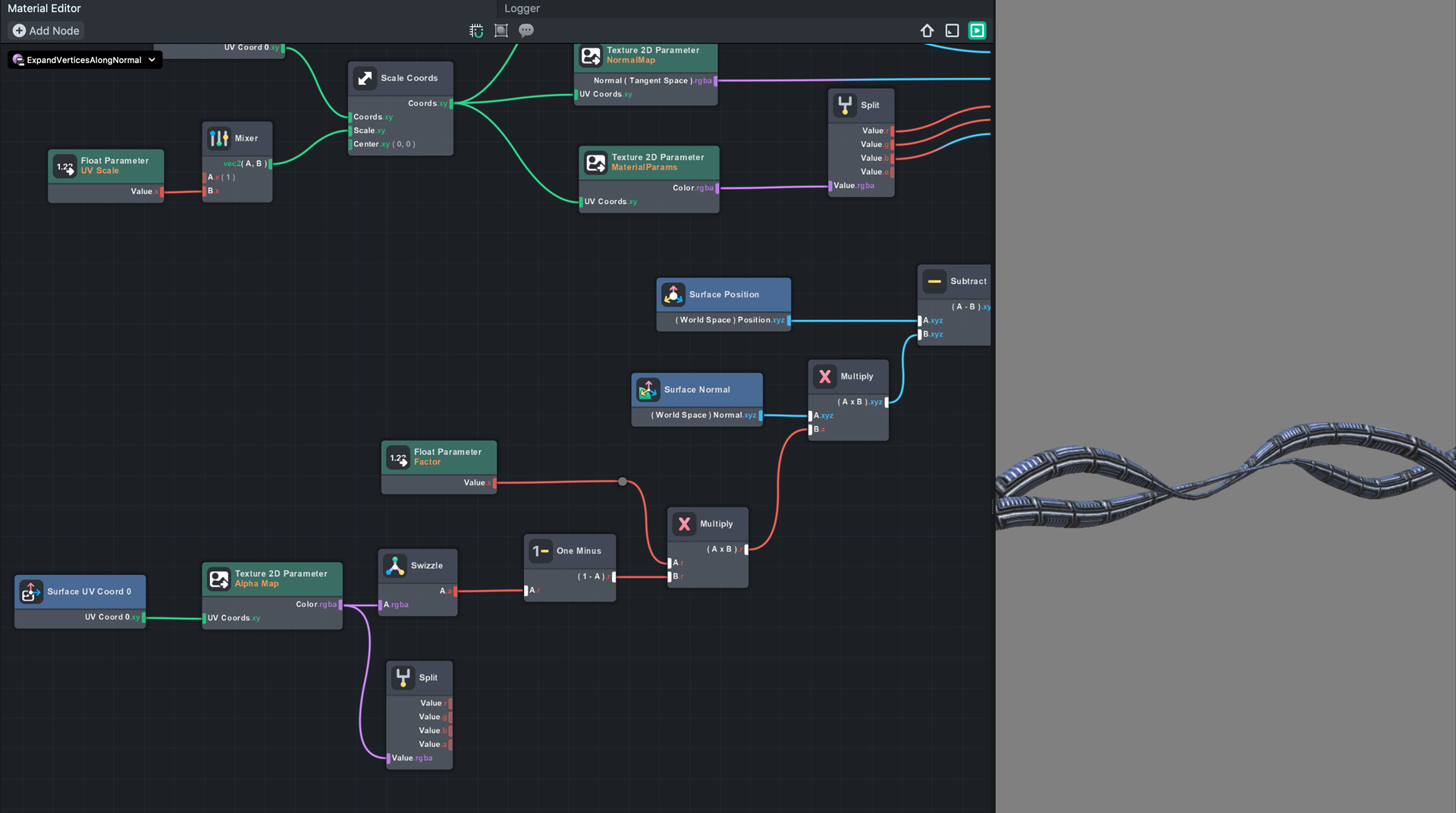 This guide is going to show you how to use Vertex Position and Vertex Normal to manipulate your mesh. It will also demonstrate Swizzle, Elapsed Time, adjusting UV using Mix, and using Conditional to test your shader result.