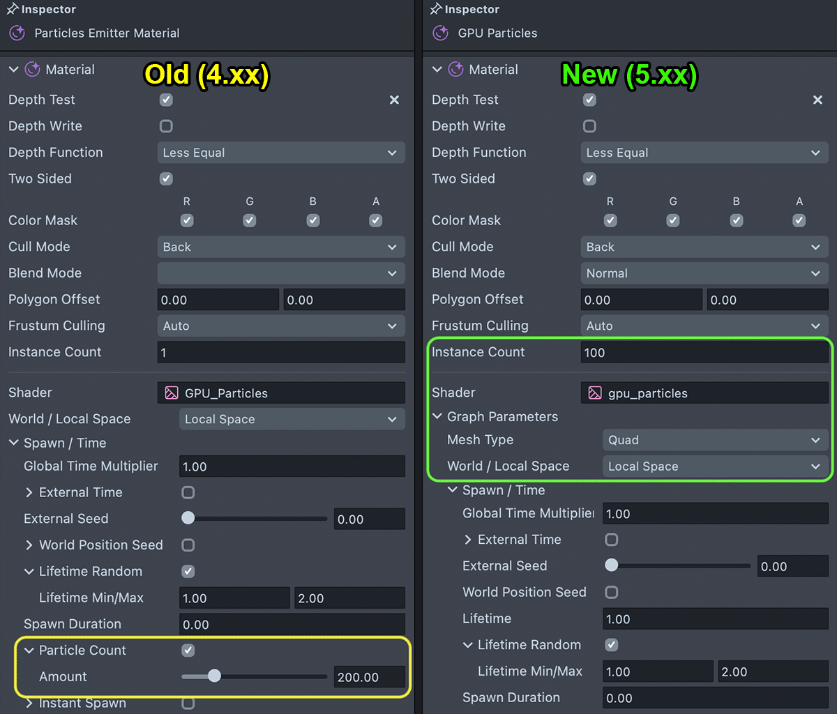 In Lens Studio 5.xx, it is easy to update to new versions of GPU Particles by updating the material's shader. Updating shaders should still preserve all of your material's settings.