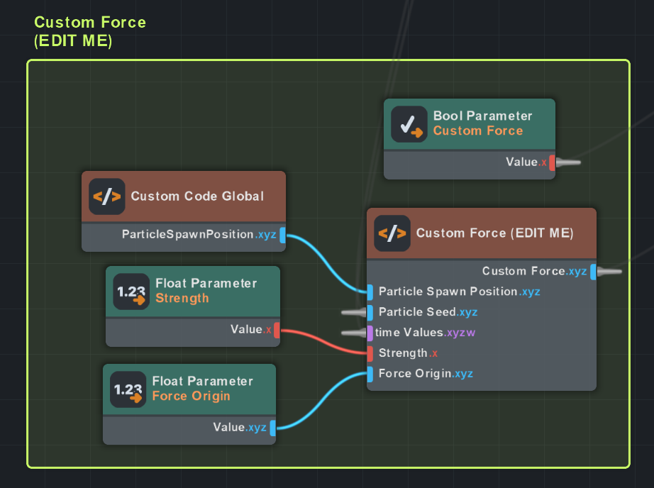 Local Forceis enabled. - Custom Force (bool): (Lens Studio 5.10+) Applies a custom force to the particles. The default is an Attract/Repel force.