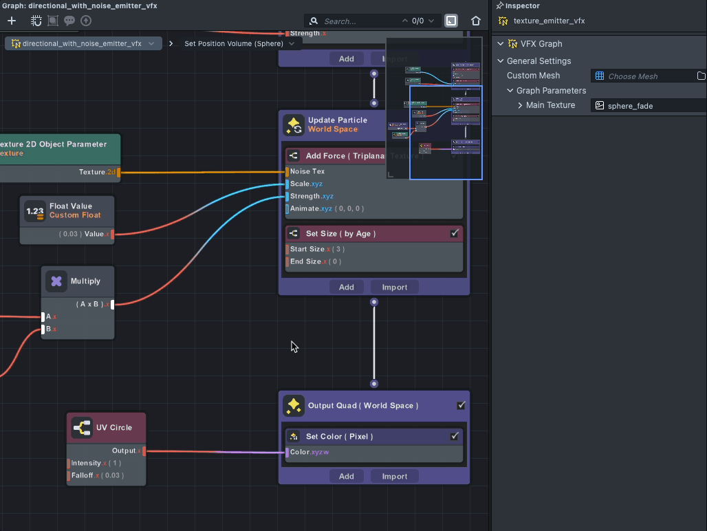 In this example as you can guess by the name, we added a Add Force(Triplanar Texture) subgraph to the Update container.