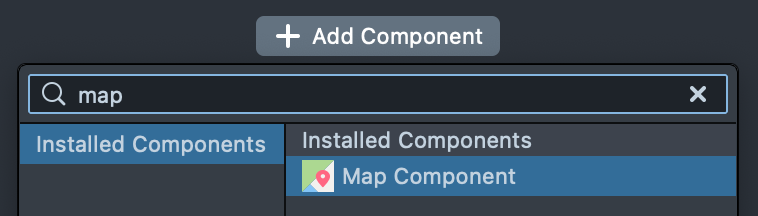 Map Component is a custom component that helps to create a map around a location. It supports showing user's live location on the map and adding your own location pins to mark content.