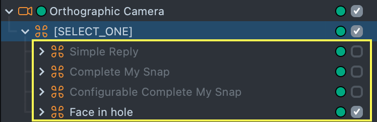 Image Response sample project contains 4 setups: Simple Reply, Complete My Snap, Configurable Complete My Snap and Face in hole. You can switch between them by selecting