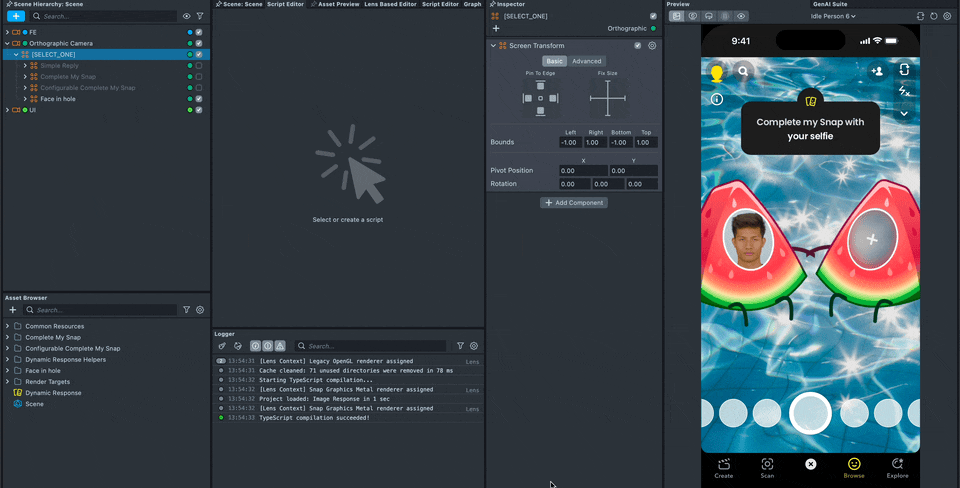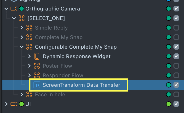 This setup allows the placeholder to be moved, scaled, and rotated, with the Lens transferring the updated placeholder transform data from the Poster to the Responder flow. The ScreenTransformDataTransfer script handles this data transfer.