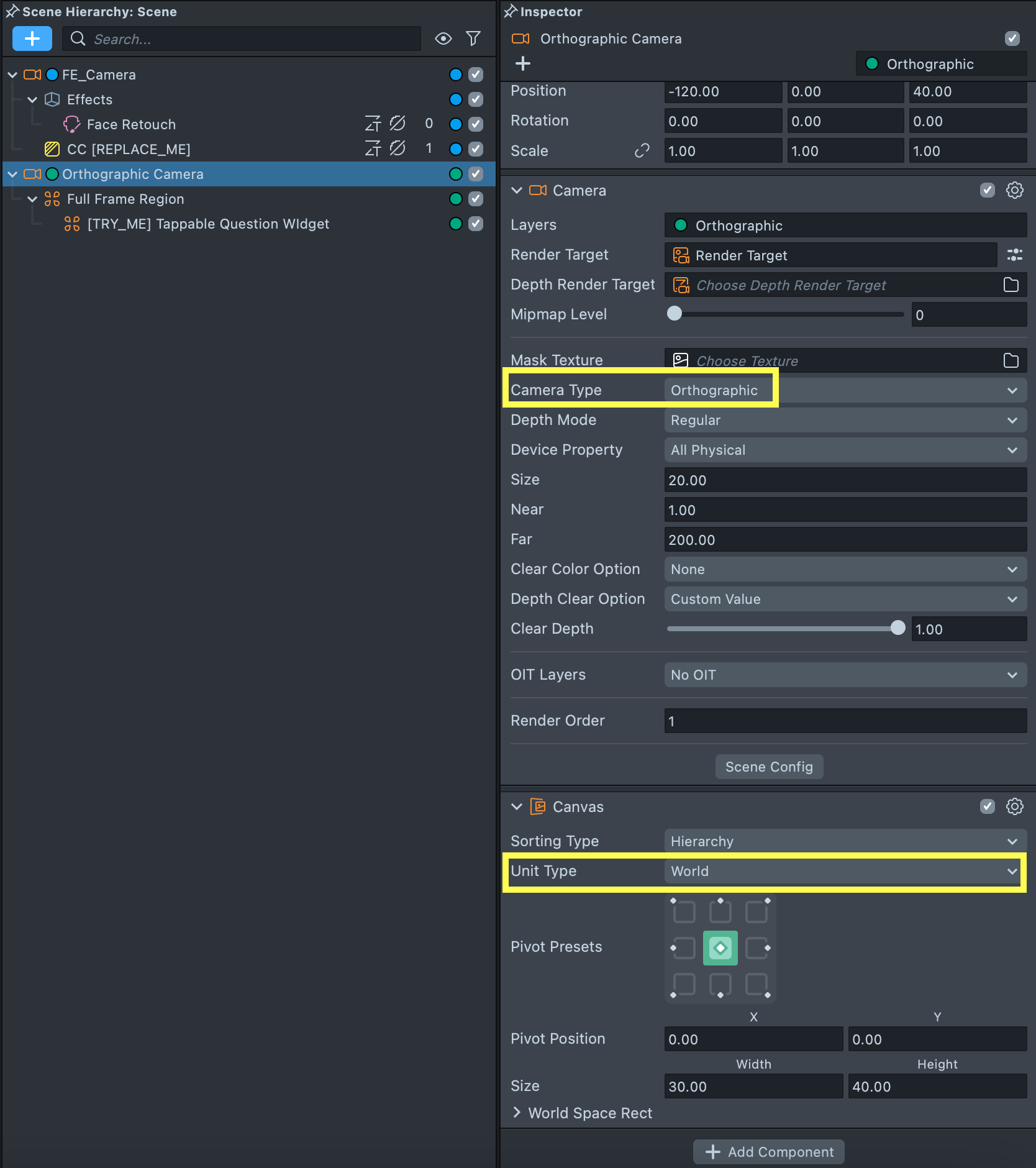 Tappable Question Widget custom component can only be used in 2D space. It requires to be placed under the Orthographic Camera and Canvas component with World Unit Type selected.