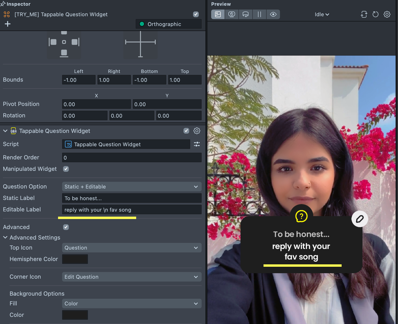 • Manipulated Widget checkbox: If enabled, the Snapchatter can drag, move, and rotate the widget. If disabled, the widget is static.