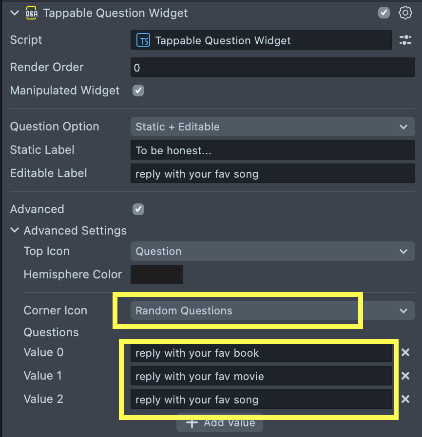 You can also download a Tappable Question Widget custom component from the Asset Library in the Featured folder.