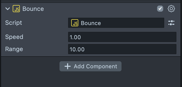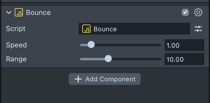 In the case of the Bounce script, it would be handy to adjust the speed and range inputs of the bouncing motion using sliders.