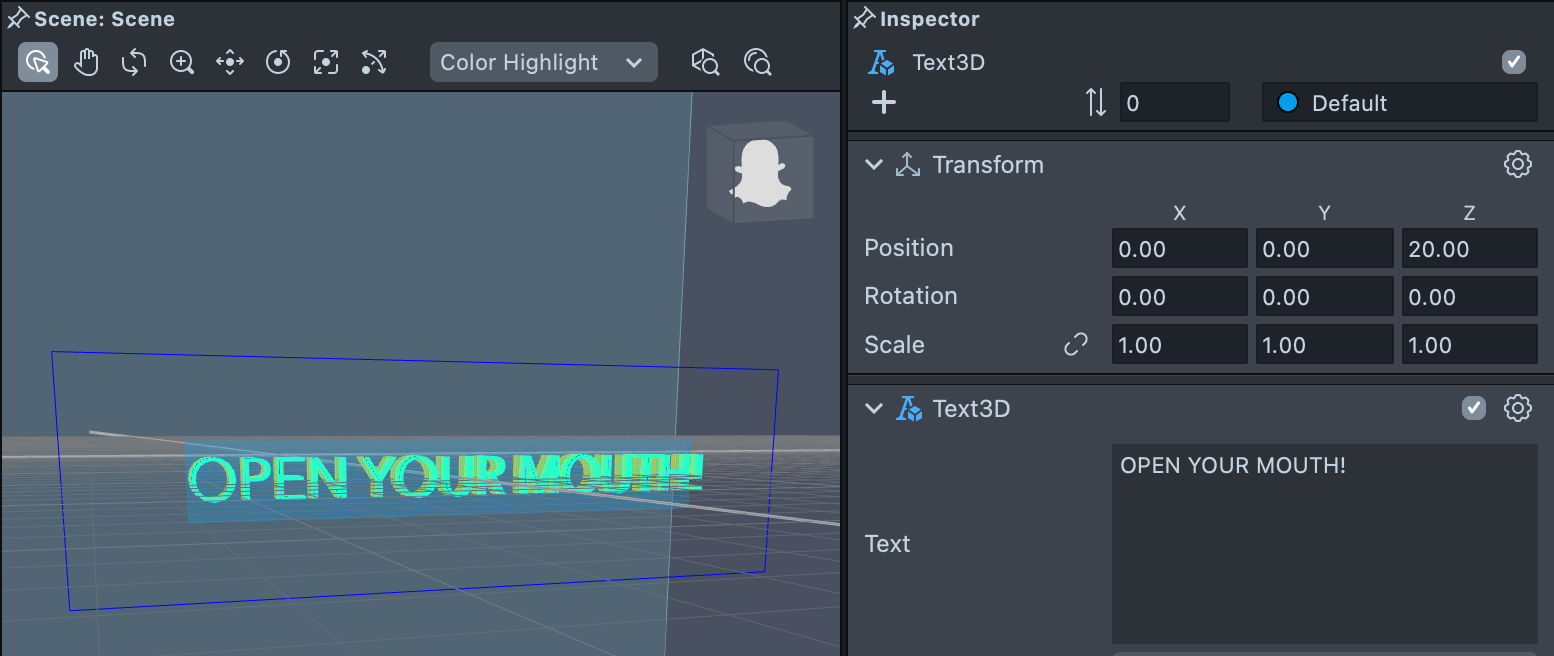 A Text3D object will be added to the scene. You can move this object around like any other 3D object in lens studio.