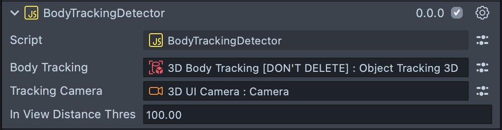 The Body Tracking Detector script controls the current state of 3D body Tracking and calls a custom Behavior trigger when state changes.
