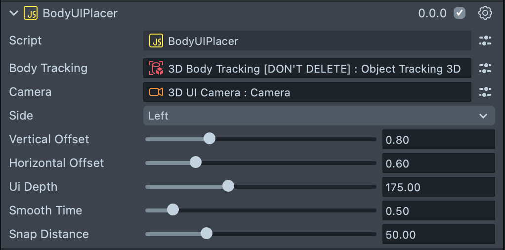 - Body Tracking : The 3D body tracking component you want to place UI relative to