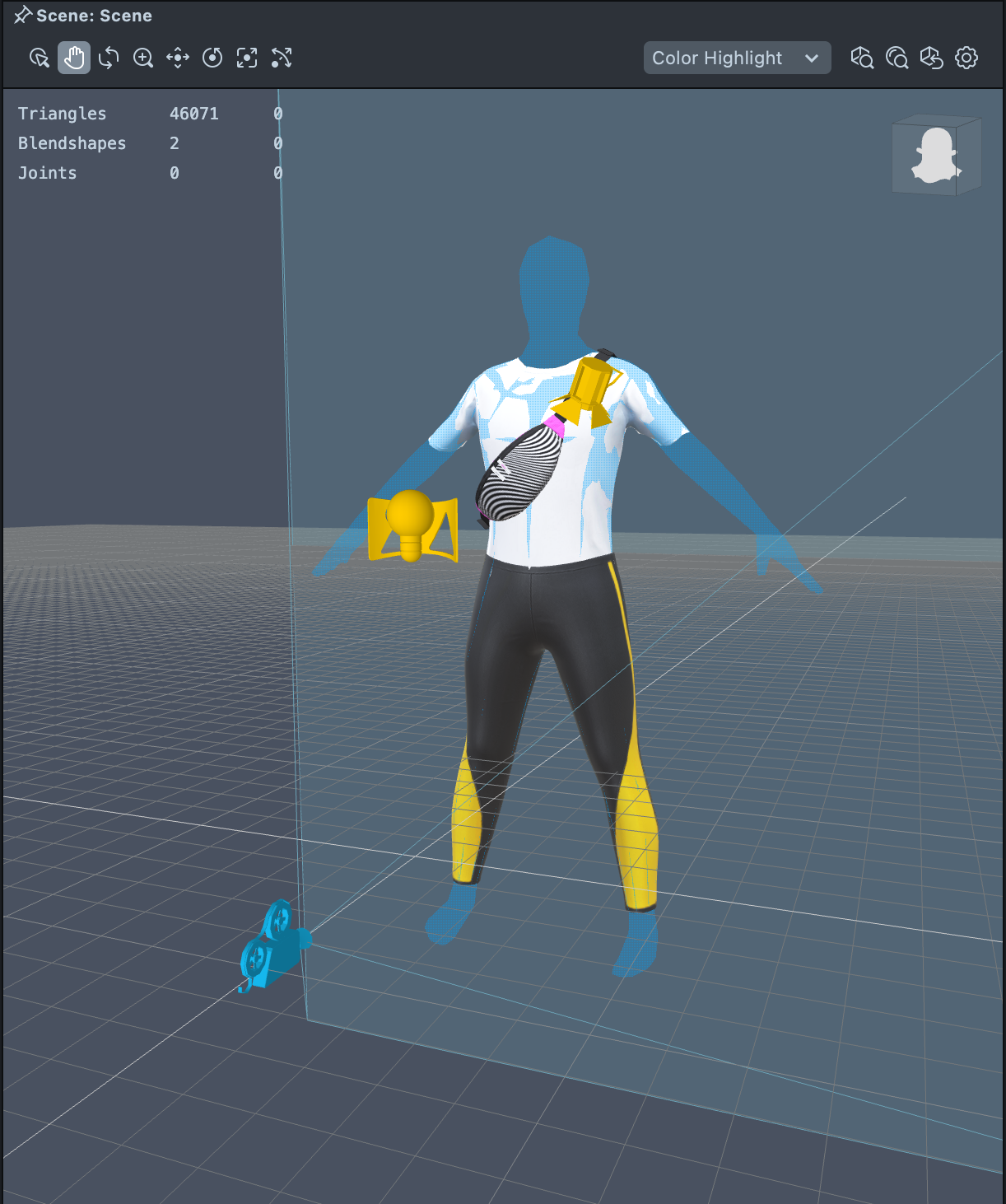 - Easily bring in a 3D mesh into Lens Studio and have it deform according to the movements and shape of the person (this does not require a rigged model).