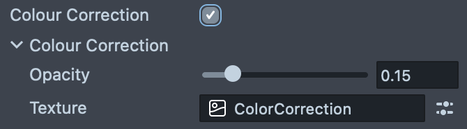 Color Correction: enable color LUT effect. After enabling this effect, you can control it from two new parameters: