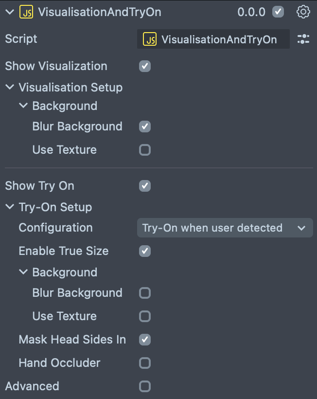 Configuration: If Both try-on and visualization are on, it’s possible to toggle try-on and visualization automatically when face is detected, or use front camera only for try-on and back camera only for visualization.