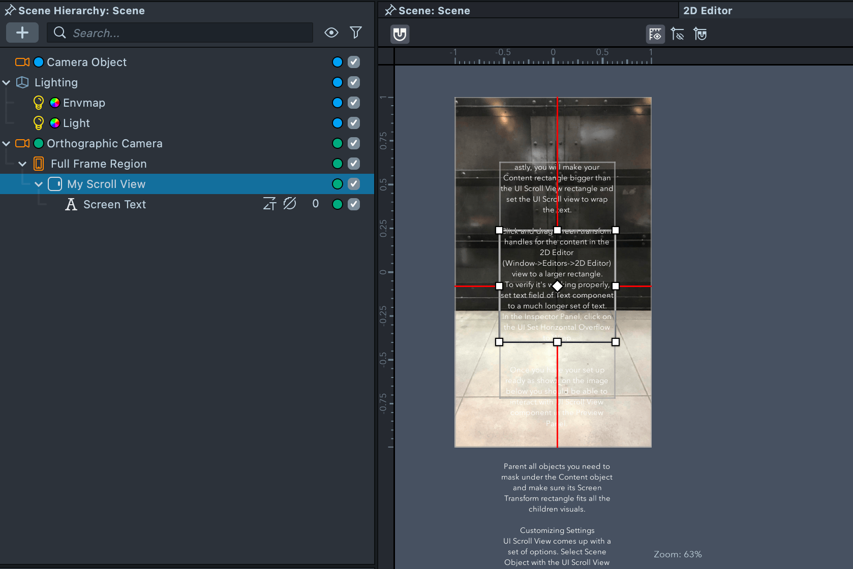 Contentinput field in the UI Scroll View custom component, by clicking on the Scene Text object and dragging to theContentinput field.