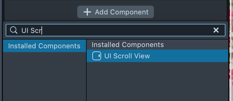 Add Componentbutton in theInspectorpanel and selectScroll View