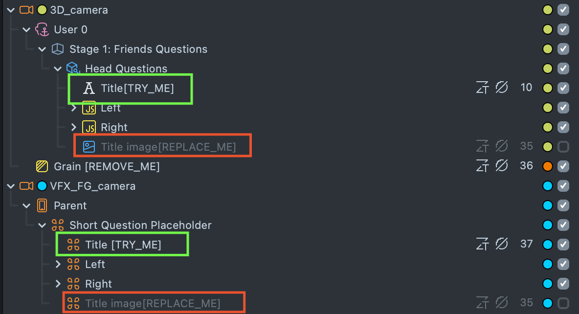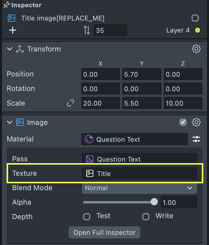 Using image components labeled as Title Image [REPLACE_ME]. To change the question in the Image component, replace its texture with your own.