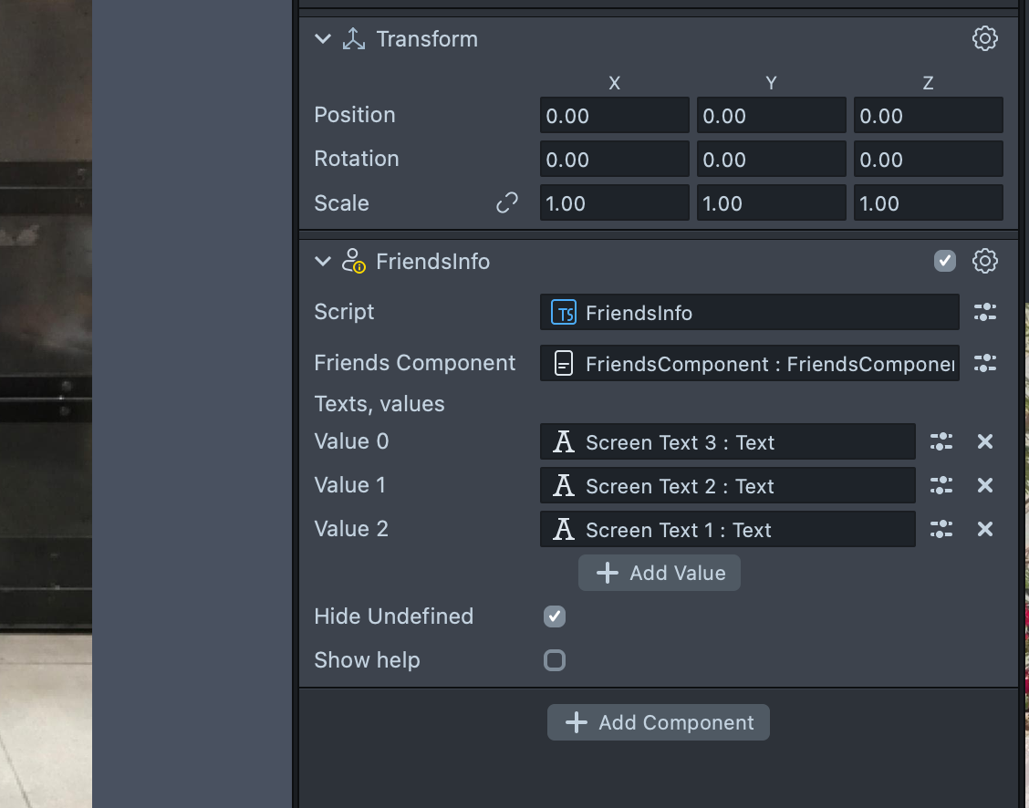 HideUndefined - boolean to set if TextComponent should be disabled, if there are less friends than inputted TextComponents.