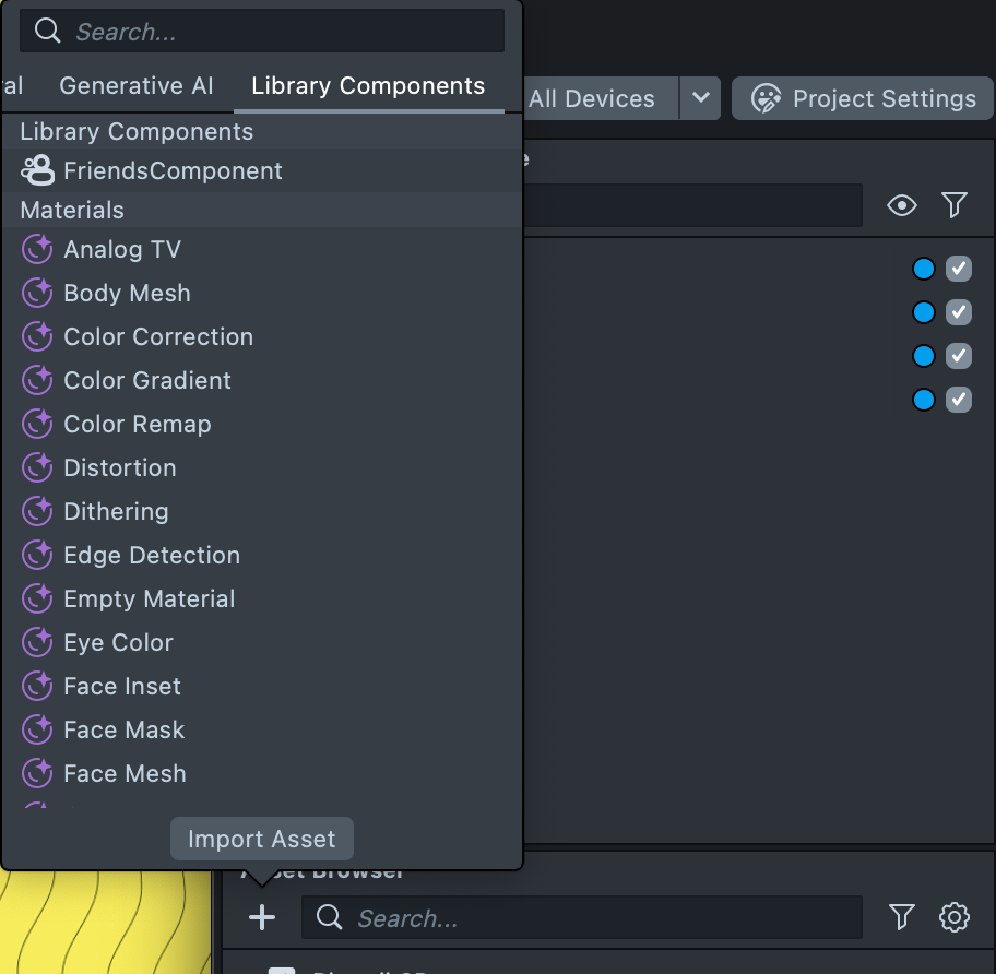 To add the FriendsComponent to your Lens, go to the Asset Library and find the FriendsComponent in the Custom Components section.