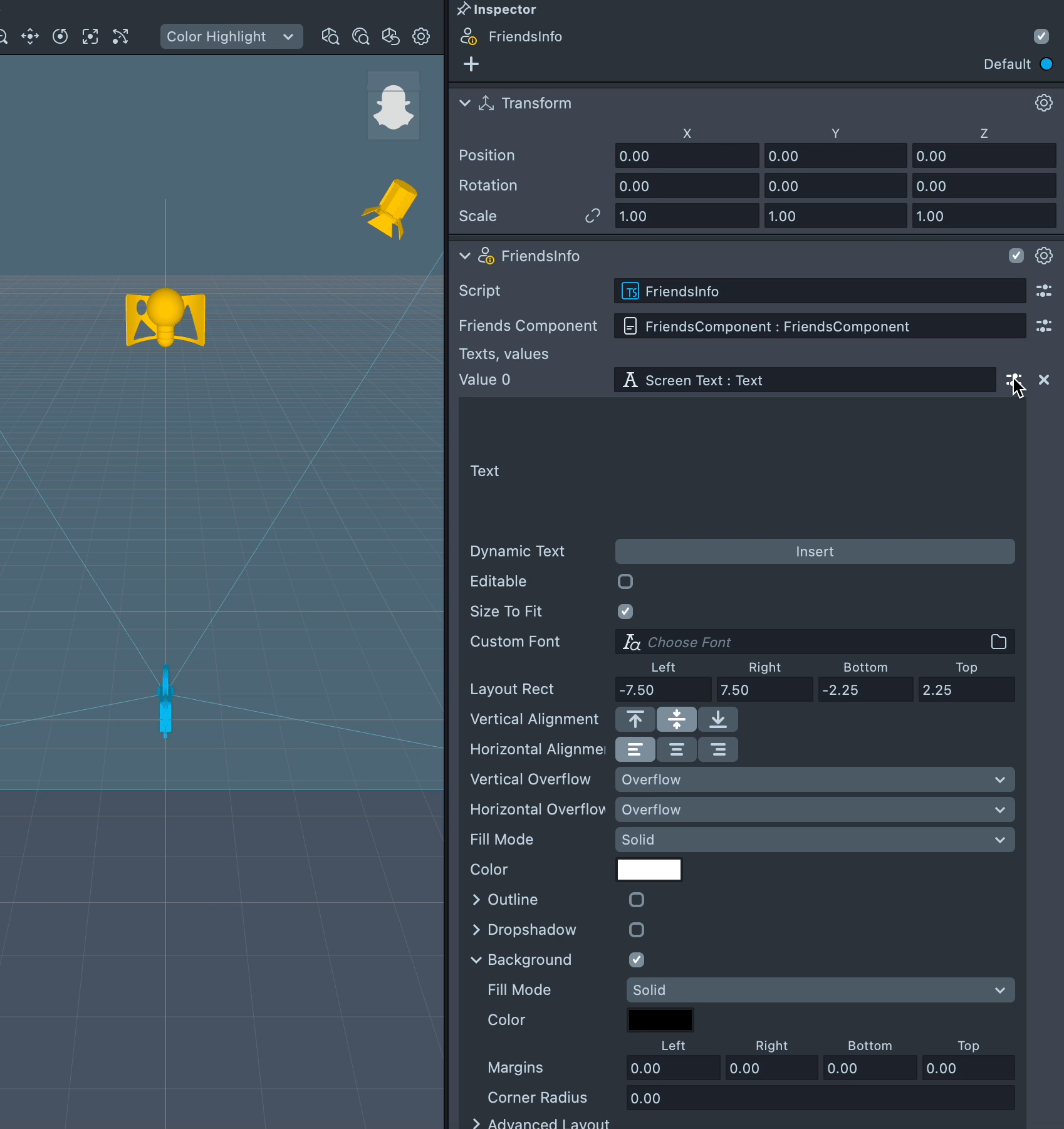 The FriendInfo Component gathers information that allows the Lens to display information like a friend’s name, zodiac, or birthday. It is a helper component for FriendComponent that fills the text components with information about friends received from FriendComponent.