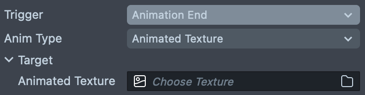 Anim Typethat is selected, here you'll configure the animation resource or object you want to respond to when the animation finishes.