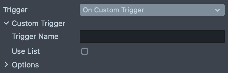 The On Custom Trigger happens when a custom trigger is fired via another Behavior helper script. See the Send Custom Trigger response type below.