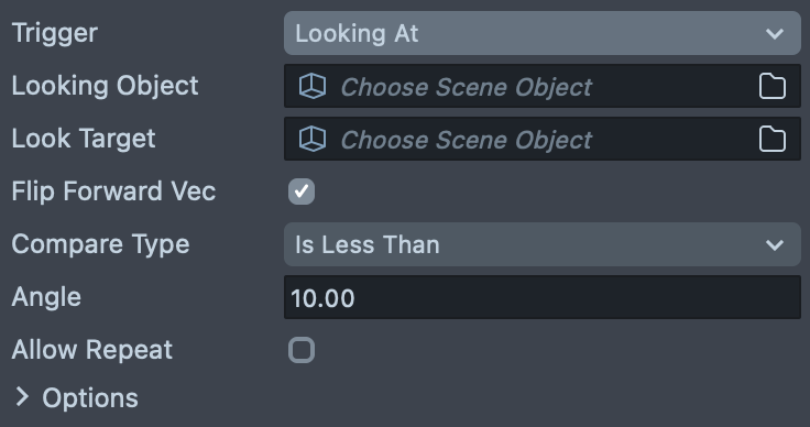 - Looking Object: The object that's doing the looking. A common use case here is to make the