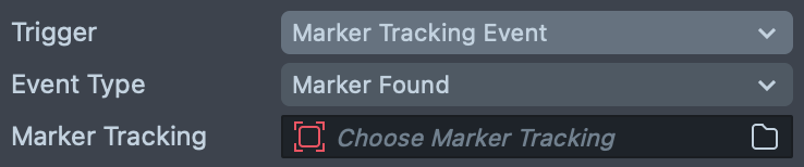 The Marker Tracking Event trigger happens when the specified marker is either found or lost.