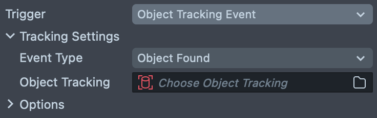The Object Tracking Event trigger happens when the specified object is either found or lost.