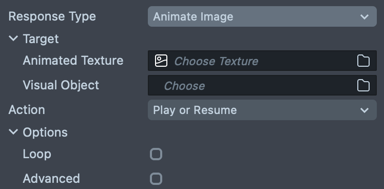 - Anim Type: The type of the animation that you want to respond to when the animation finishes. This can be an animated texture, an animated image or an animated 3D mesh.