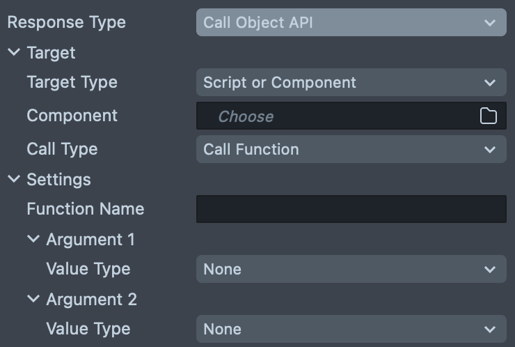 - Target Type: Choose between (SceneObject, Component, Script API, or Global API).