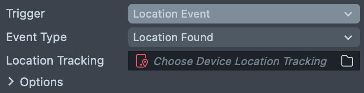 The Location Event trigger happens when the specified location or Landmarker is either found or lost.