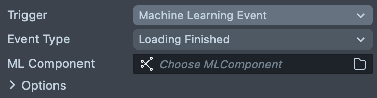 The Machine Learning Event trigger happens when a machine learning component has loaded or has ran. Learn more about these events in the ML Component guide.