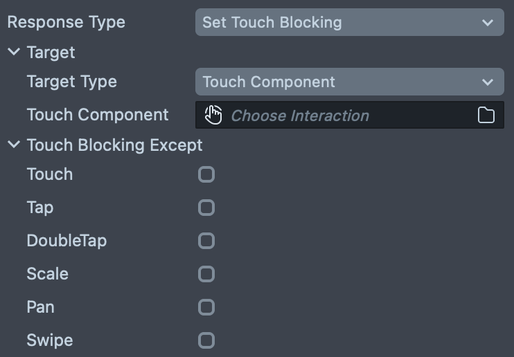 The Set Touch Blocking response type allows you to set how your Lens deal with touches.
