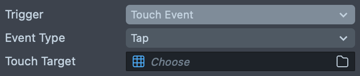 The Touch Event trigger responds to the user touching the screen or a portion of the screen.