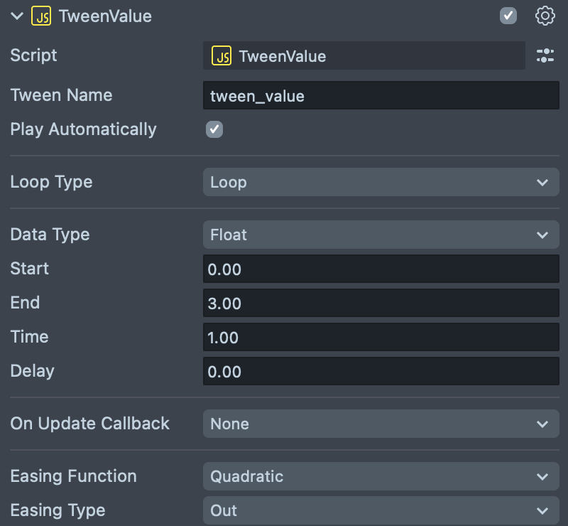 - Play Automatically: When enabled, the tween will start automatically.