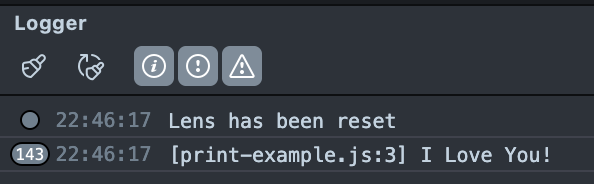 When a log is hidden, the number of logs hidden is shown next to the type icon: