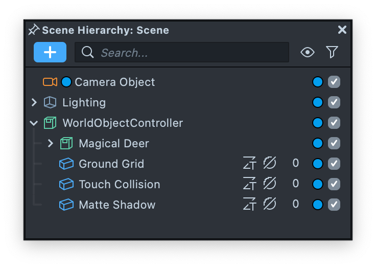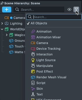You can also find a search field which will filter the Scene Hierarchy by the inputted keyword.