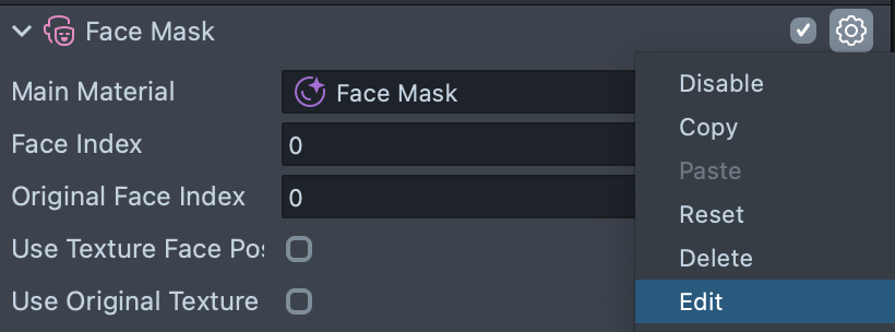 Add a Face Mask component to the scene. (Scene Hierachy panel > + >