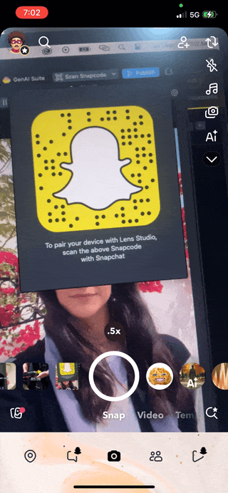 Now that your device is paired with Lens Studio, you can now push your Lenses to Snapchat to preview them.