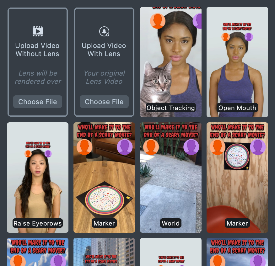 A Lens Preview is also packaged with your Lens. A preview shows off your Lens in Lens Explorer and will be visible to the public. Click on + to pick a pre-made video or upload your own. For more information on Preview Videos, please refer to the Preview Videos guide.