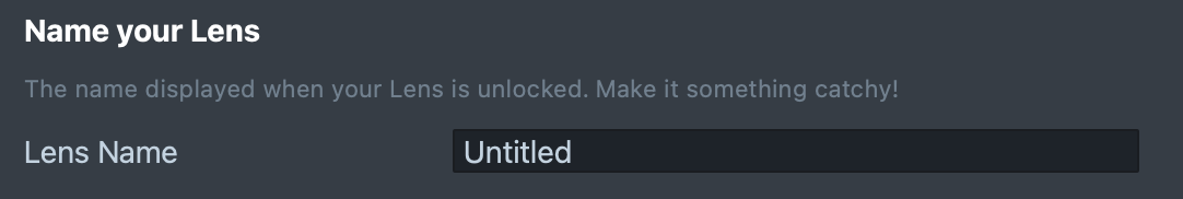 The name of your Lens. This will be shown to users when they receive the Lens. It's also how people can identify, and search for your Lens.