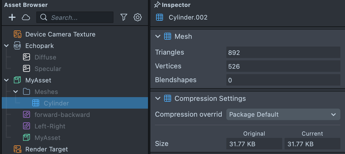 When you import a 3D assets into Lens Studio, the mesh is compressed based on the Package Default settings.