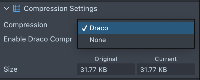 To do this, let's look at the Compression Settings section in the Inspector panel, attributes available here are related to how the mesh was saved in the software used to create the mesh.