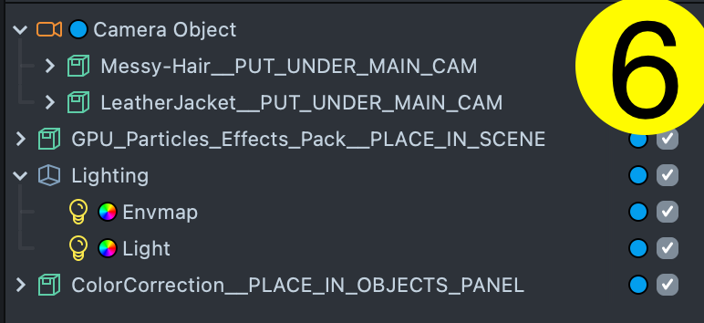 We then drag them into the Scene Hierarchy (6) to construct our Lens.