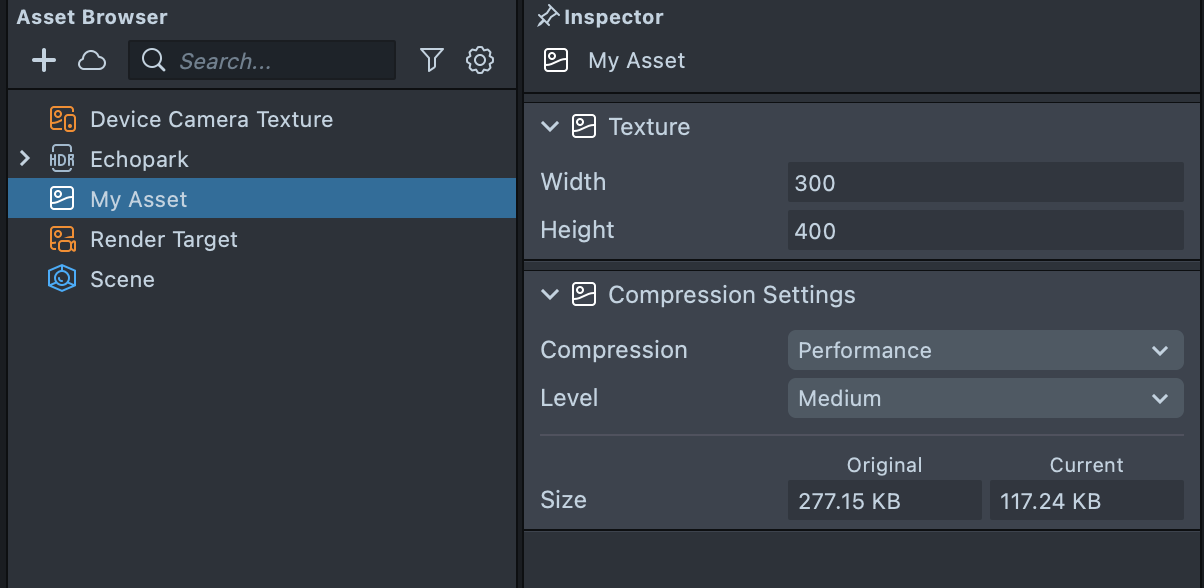 When importing your assets into Lens Studio, Lens Studio automatically compresses 2D assets such as images and animated textures.